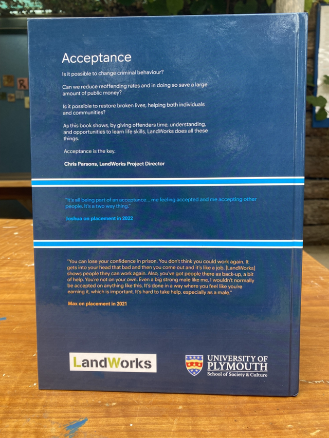 Called Acceptance, the book combines a powerful and thought-provoking narrative on the day-to-day goings-on at LandWorks, compiled from project director Chris Parson’s regular blog posts and the lived experience of people on placement as they recount their stories in their own words for the PeN project. Since it was founded in 2013, LandWorks has helped over 200 people in prison, or at risk of going to prison, to find a route back into the community and employment through a combination of vocational skills training, practical living support, and counselling.